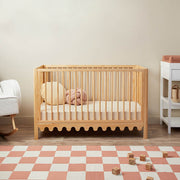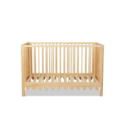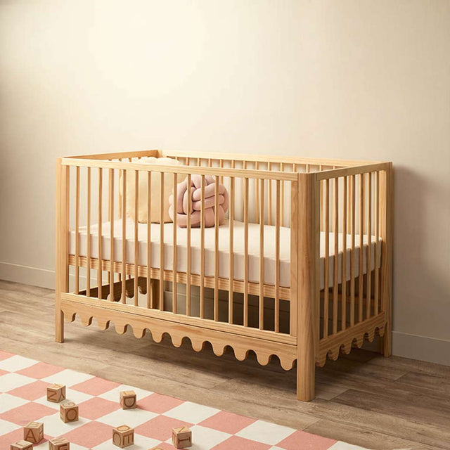 Introduce style and safety to your nursery with Mocka's Luan Cot - Natural. Made from sturdy pine wood, this cot features a bold wave motif and open spindles for a playful design. Whether your space is minimalist or vibrant, the Luan Cot complements any aesthetic while offering a cosy and secure spot for your little one to rest.