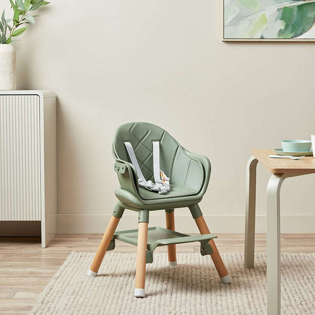Discover the versatile Macey 3-in-1 Highchair in stylish Fern green. Perfect for your dining room, it evolves from highchair to toddler seat, adapting to your child's growth. With an easy-clean PU seat and dishwasher-safe tray, mealtime is hassle-free, while its calming hue adds a touch of sophistication to any space.