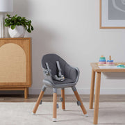 The Macey 3-in-1 Highchair adapts to your child's growing needs. Start with the high chair and tray configuration, then remove the tray to seat the highchair at the table and lastly transition to a comfortable toddler chair - saving you from the hassle of purchasing multiple seats.