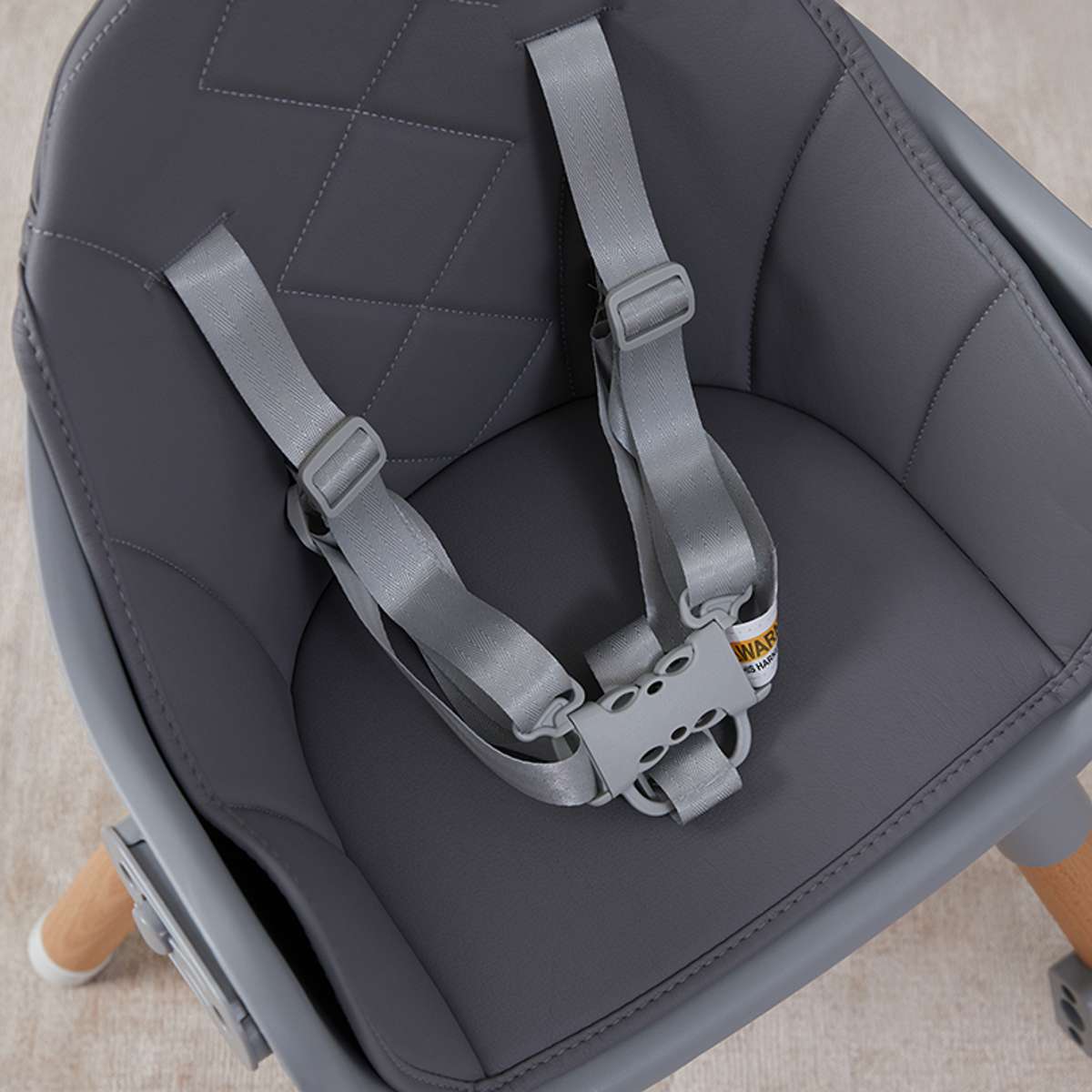 Enhance mealtime with the Macey 3-in-1 Highchair in Grey. Crafted for modern families, this convertible baby high chair is designed to grow with your child. Its quality PP material is super durable, while the dishwasher-safe tray simplifies clean-up. The soft PU seat cushion, featuring a smooth and waterproof surface, provides comfort and easy maintenance. From high chair to toddler chair, its adjustable tray and sleek design make it a perfect fit for your space. Embrace functionality and style with Mocka's Macey Highchair.