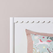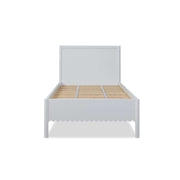 The Maisie Scalloped Bed has a fun scalloped trim on the bedhead and foot. This design adds a playful and charming touch to any child's room, making bedtime enjoyable.