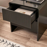 The Majorca Bedside Table in black is perfect for modern bedrooms and guest rooms. Featuring two push-to-open drawers with a stylish ribbed front design, this sleek unit combines practicality with elegance. With its MDF frame, painted finish, and soft curved edges, it adds a touch of contemporary charm while keeping your essentials close at hand.