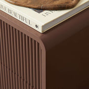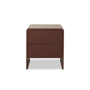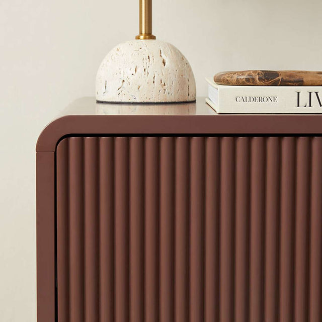 With curved, fluted details and a chocolate brown finish inspired by mid-century design, this bedside table adds warmth and a timeless elegance to any bedroom.