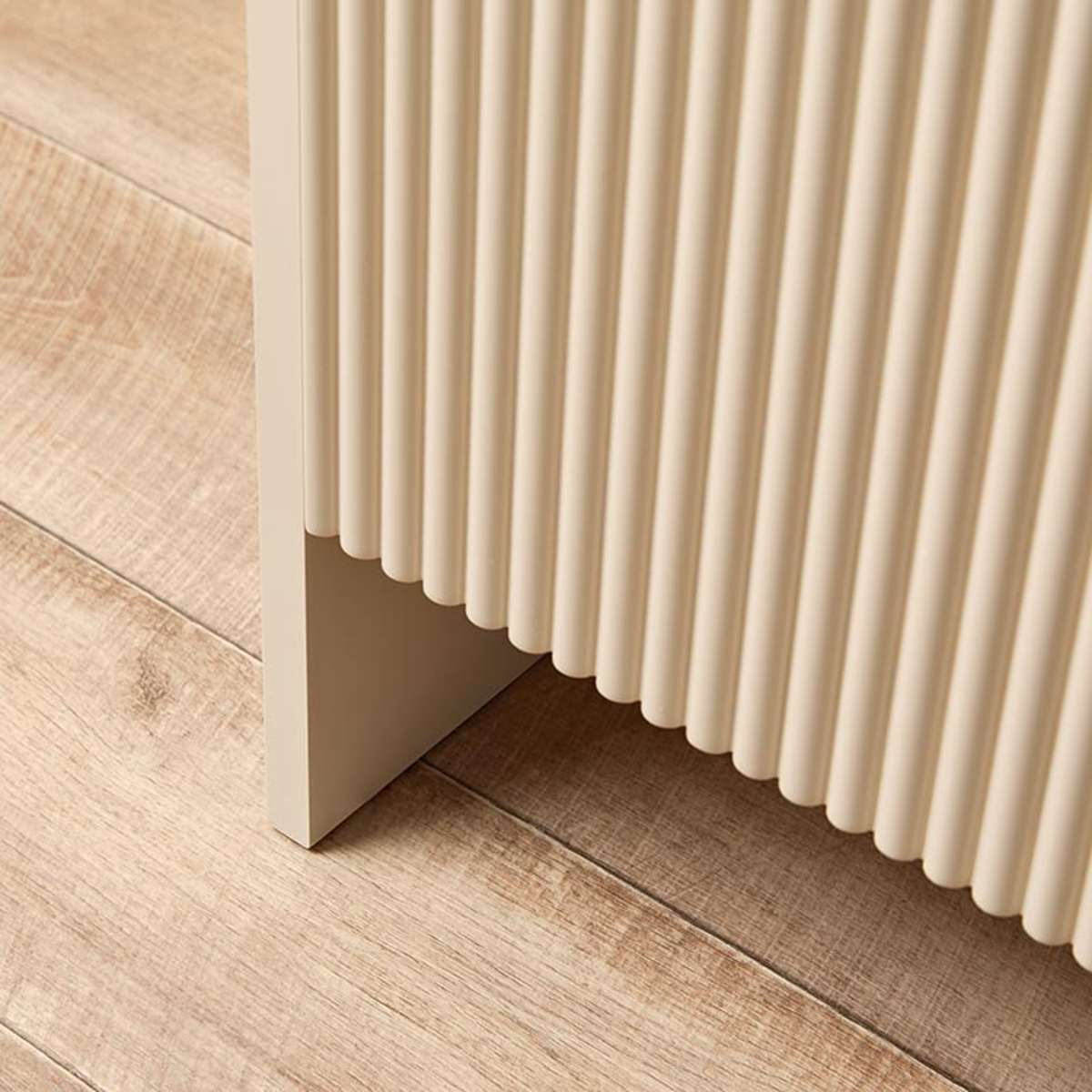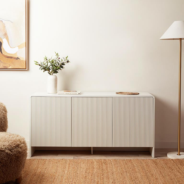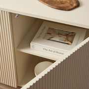 The ribbed and curved design of the Majorca Buffet adds a modern touch to any room. Its soft beige tone fits seamlessly with various decor styles, enhancing your home's look.