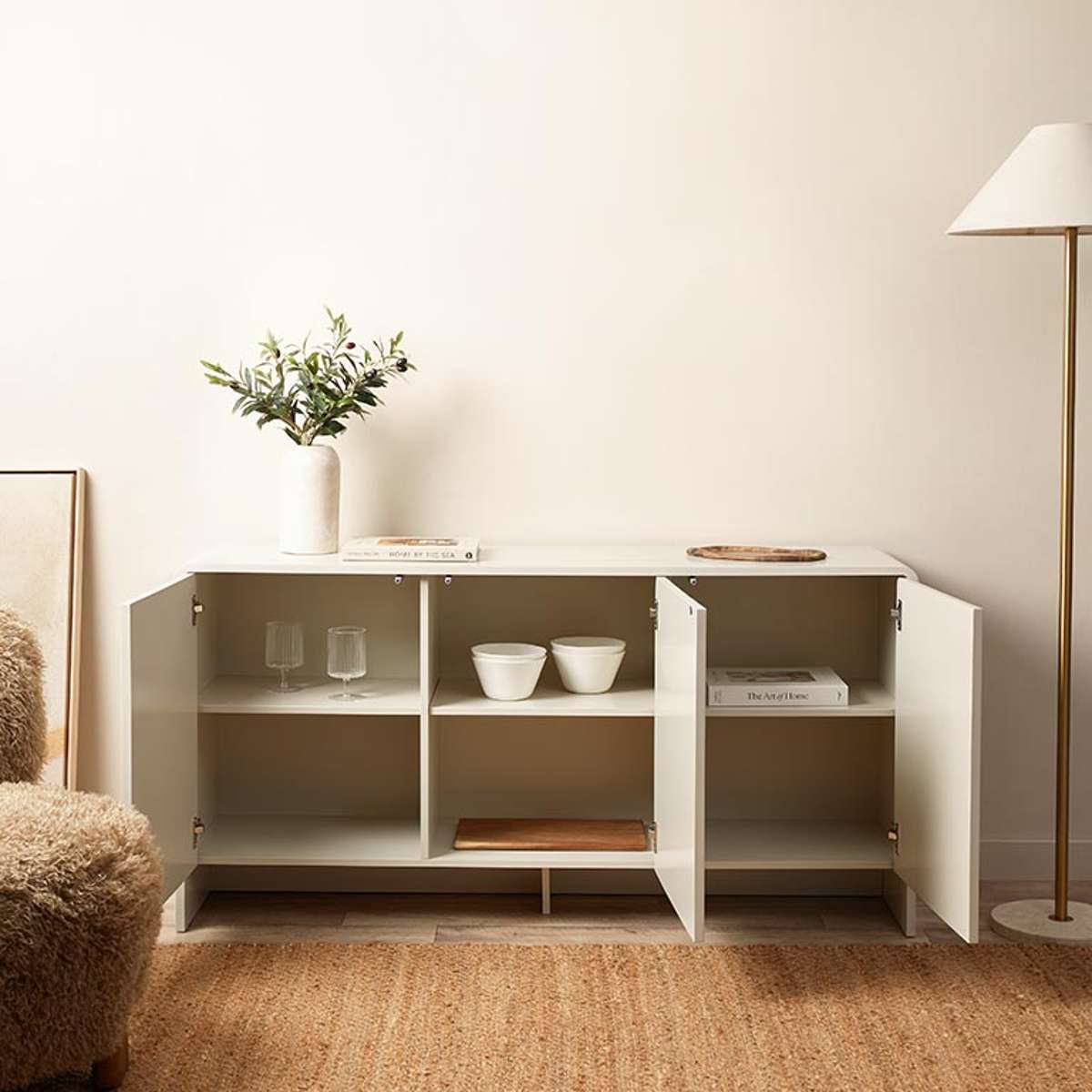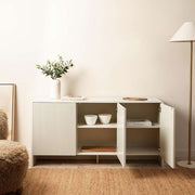 With three push-to-open cupboard doors, the Majorca Buffet makes storing and retrieving items simple. No handles or knobs needed, just a light touch to open the doors.