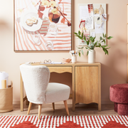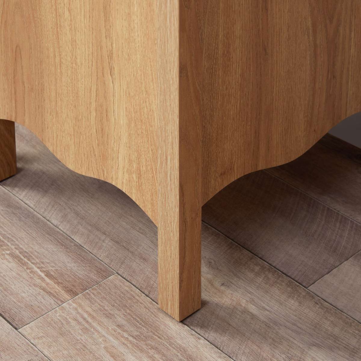 The Malena Desk - Natural is perfect for any home office or kids' bedroom. With its modern coastal design and wave-shaped details, this desk adds style and practicality. It features a slim drawer and a cupboard for plenty of storage. Made from MDF and finished with durable melamine.