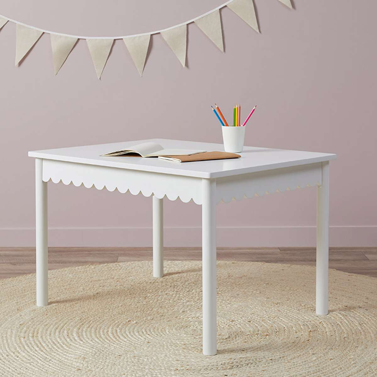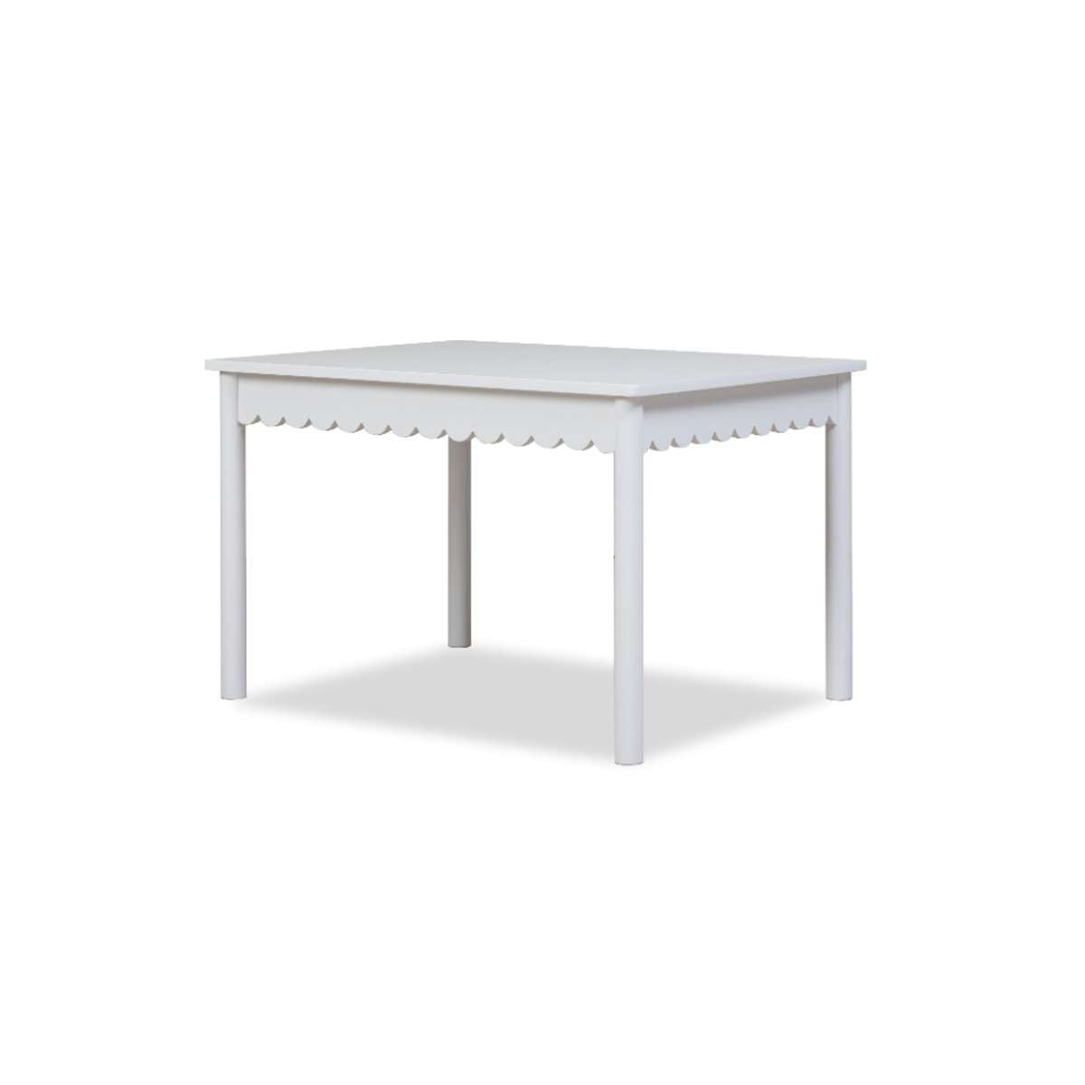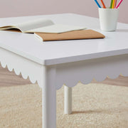 The Mini Maisie Scalloped Play Table has a playful scalloped trim, adding a touch of fun to any playroom. Kids will love the unique design that makes playtime special.