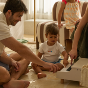 The Mini Toy Piano has working cream and black keys, helping kids explore music while improving coordination. A volume knob lets parents manage sound levels during play.