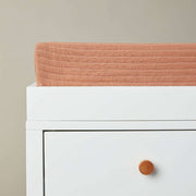 The Mocka Cotton Change Mat Cover – Clay is made from soft, breathable cotton gauze. This gentle fabric ensures your baby's skin is cosy and protected during every change.