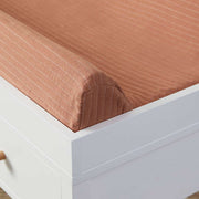 The Mocka Cotton Change Mat Cover – Clay adds style and comfort to your nursery. Made from soft, breathable cotton gauze in a natural colour, it suits any baby's room. It's easy to wash and has a cosy, striped, quilted texture, making it soft and comfy for your baby's skin. Stay clean and stylish with Mocka.
