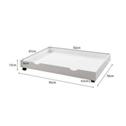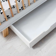 Featuring a simple white colour it will easily blend in with your cot of choice. Two curved hand holds make it comfortable to reach and slide the draw out. The rotating castor wheels provide flexible movement to manoeuvre the tidy box whenever you need - from chest of drawers to under the cot. A smart solution for small spaces, enjoy a tidy nursery with the Undercot Storage.