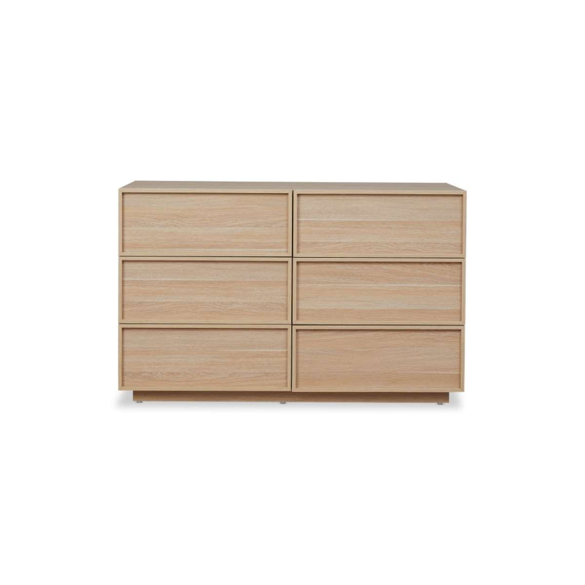 The Osaka Six Drawer - Natural features a Scandi-inspired light blond wood-look finish, creating a fresh and modern aesthetic. Its sleek border design adds sophistication and seamlessly blends with contemporary décor.