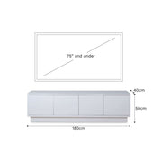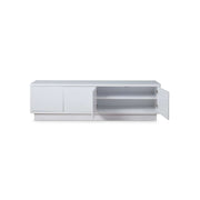 The four spacious cupboards are also super handy for housing your consoles and will keep all the cords and devices hidden behind closed doors. The push to open doors and internal shelving help keep everything easily accessible and organised. The in-house design features a classic white colourway, on-trend curved edges and a grounded, plinth base to create a stylish centrepiece in your living room or media room.