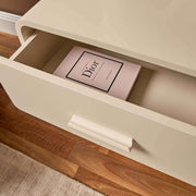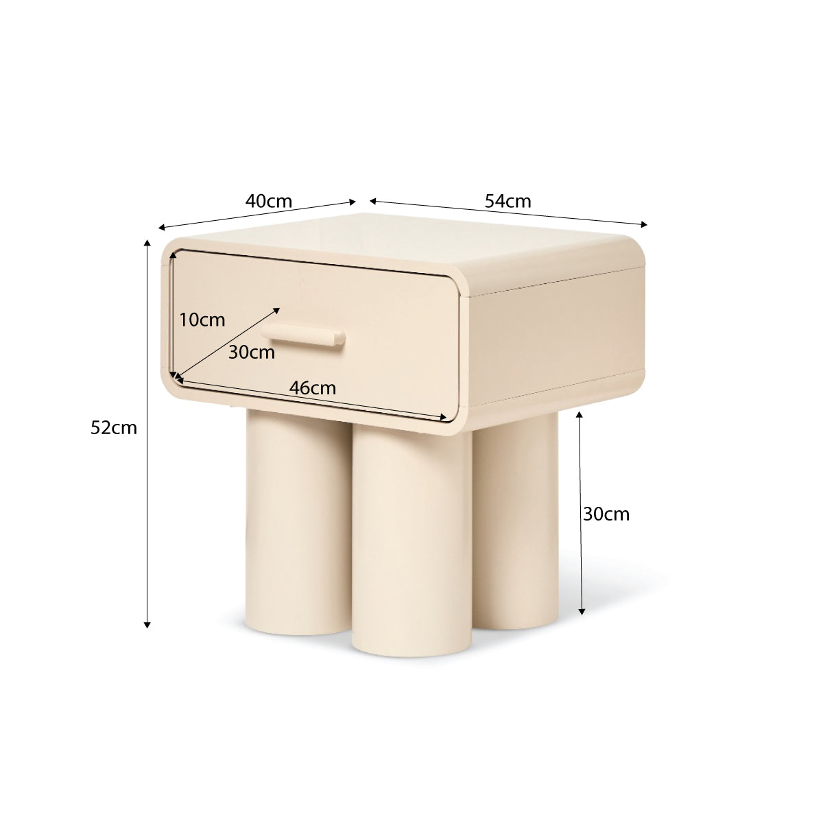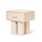 With rounded edges, chunky legs, and a beige finish, this bedside table adds a modern look that easily blends with contemporary or Scandinavian-inspired interiors.
