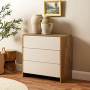 The Owen Three Drawer in Pecan/Beige is a stylish storage solution with a farmhouse feel. Featuring a mid-brown frame and cream drawer fronts, its soft curves suit any bedroom or office space. With three push-to-open drawers, it’s perfect for keeping your essentials tidy and organised. Designed for both kids and adults, this dresser is a versatile choice.