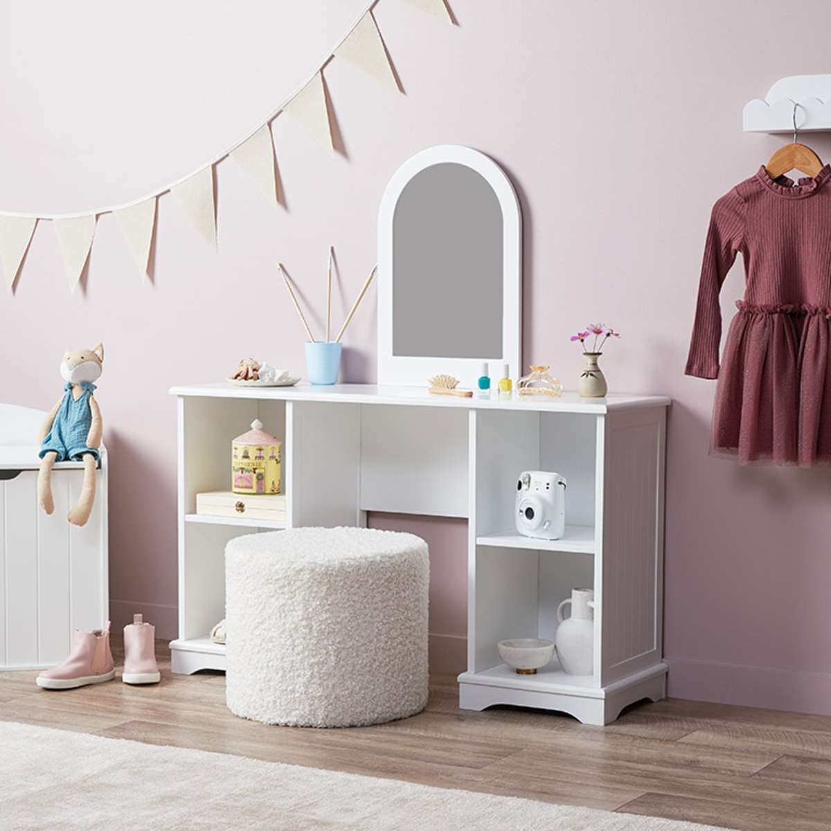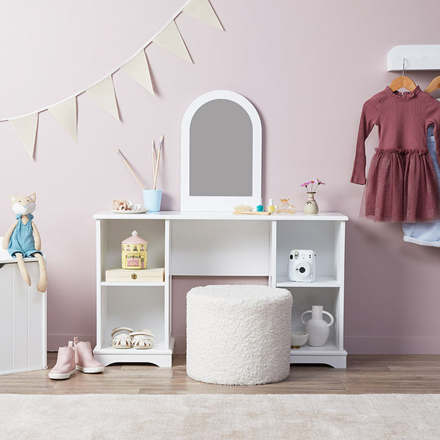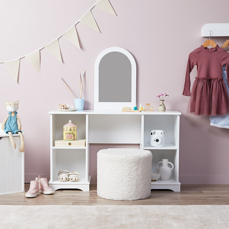 Coordinate with our Mini Moo Stool, which fits neatly under the vanity. This stool is the ideal height for little ones to sit comfortably while playing, adding convenience and style to their play area.
