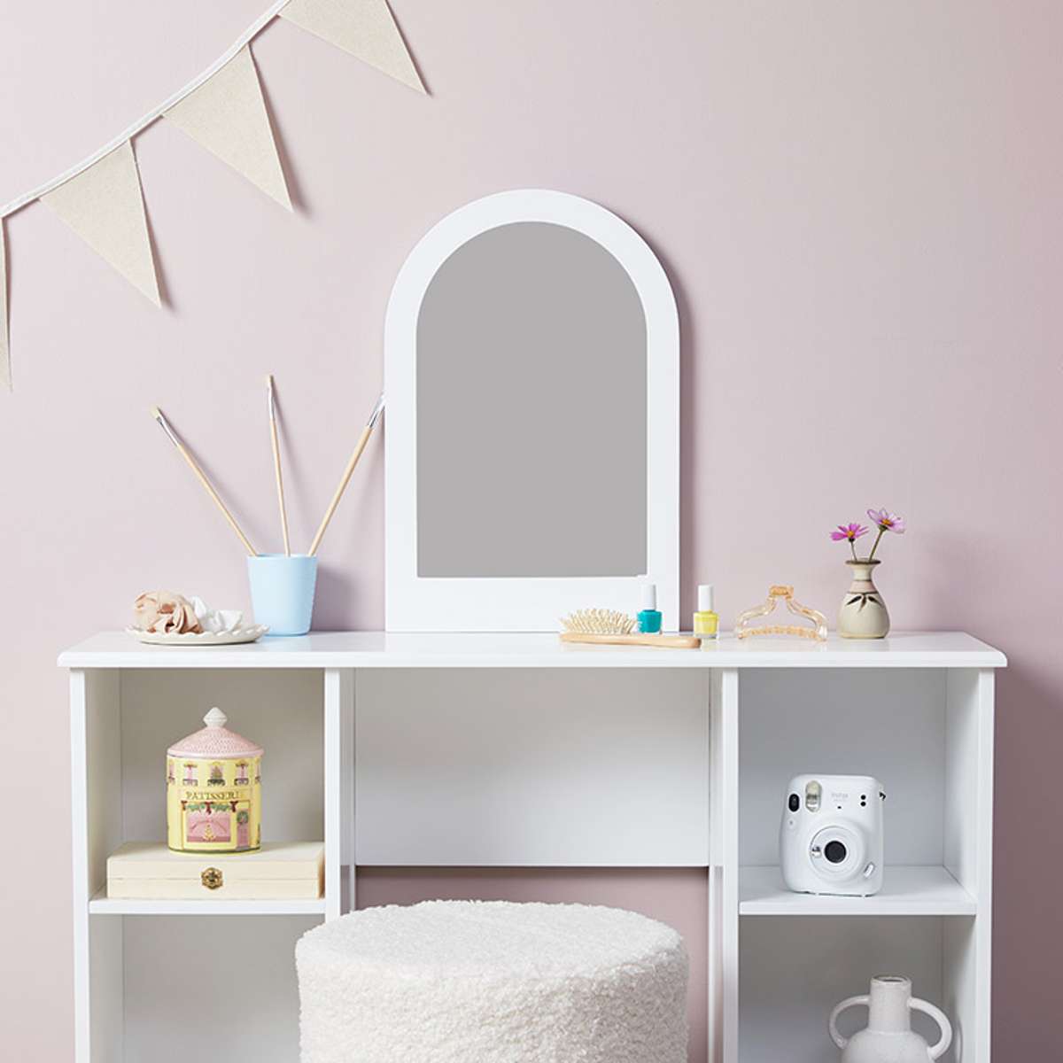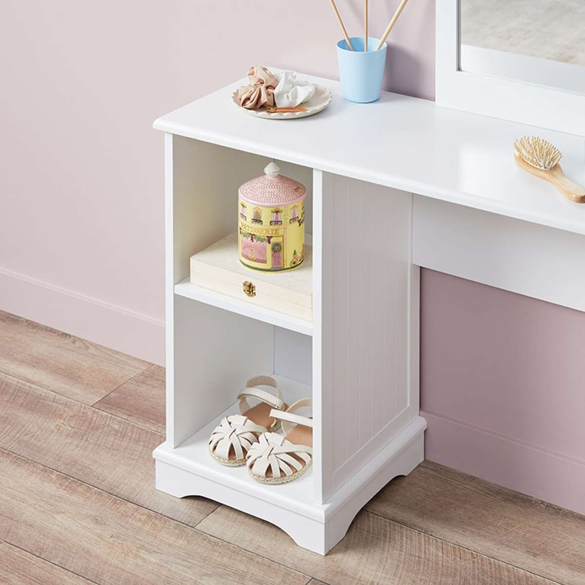 The Play Vanity features four handy cubby holes to neatly store dress-up accessories and toys. This keeps your child's space tidy and ensures everything needed for playtime is within easy reach.