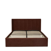 Introducing the Quinn Queen Bed in rich chocolate velvet. This classic-shaped bed frame features a cushioned bedhead for extra comfort and pine timber slats for strong support. Inspired by mid-century design, its stylish colour suits any bedroom. Perfect for adding a touch of elegance and warmth to your space.
