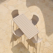 Transform your outdoor space with the Ravello Outdoor Four Seater Dining Table in beige. Perfect for alfresco dining, this steel table features a durable powder-coated finish and modern curved corners. Its versatile design lets you create long table or add two together for a large square to suit your guests. The neutral beige tone complements any outdoor chairs for a stylish, cohesive look.