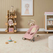 The Raven Rocker in soft pink is the perfect blend of style, comfort, and practicality for your baby. Lightweight, folding design makes storage and travel simple, while the washable cover ensures easy upkeep. With a removable toy bar, this rocker fits effortlessly into any nursery or living space, offering a cosy and calming spot for your little one.