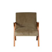 Add a touch of elegance to your living space with the Ray Velvet Occasional Chair. Featuring a firm foam seat and back, solid wood legs and arms, and a mid-century inspired design, this chair blends comfort and style. The soft sage velvet fabric and walnut accents make it perfect for bedrooms, lounges, or study nooks.