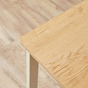 The soft beige tones and wood-look top create a warm, inviting feel. The urban industrial style adds a modern touch to any dining room.