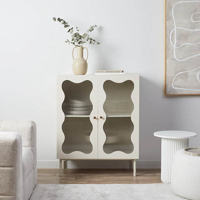 The Remi Wavey Cabinet has plenty of space for storing your favourite books or drink supplies. Its two-door design helps keep your things neatly organised and easily accessible.