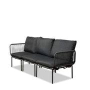 Enhance your outdoor living space with the Sorrento Outdoor Three Seater Sofa in charcoal. Built for style and durability, this sofa features a powder-coated steel frame, water-resistant cushions, and trendy rope detailing on the arms. With space for three and plush back cushions, it’s perfect for relaxing outdoors, whether on a patio, balcony, or garden deck.