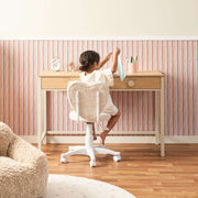 Two drawers with oversized cream knobs keep essentials tidy and within reach. Perfect for organising school supplies, books, or craft materials, helping kids stay focused and clutter-free.