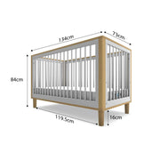 The Tahoe Cot - White/Natural gives your new baby the ideal place to sleep. This stylish cot comes in a chic natural and white design which easily fits into any nursery styling. Super practical and with everything a baby will need to rest safe and sound. The adjustable base features a newborn setting, so you can raise or lower depending on your babies age and development.