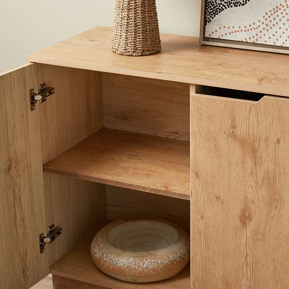 - Natural wood-look finish