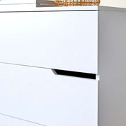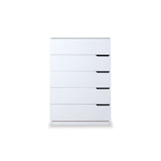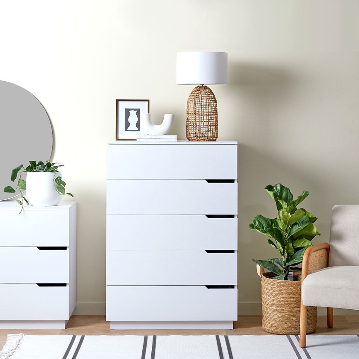 The Zack Tallboy - White offers a super-stylish, essential storage solution for your modern home. With sleek lines and striking cut-out handles, this design is a standout in any room. The classic white colourway effortlessly complements your home decor no matter the style.