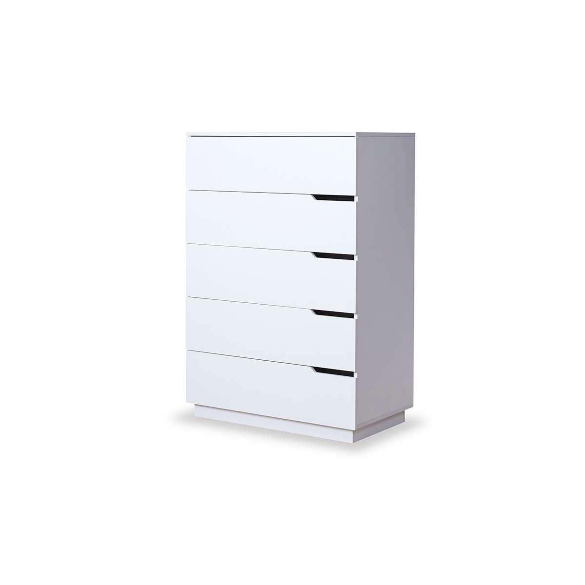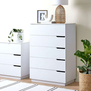 With five spacious sliding drawers, it's the perfect place to store all your clothing, accessories, and household essentials. Whether you're looking to declutter your bedroom or add some extra storage space to your living room or home office, this tall chest of drawers is a versatile, affordable, and stylish choice.